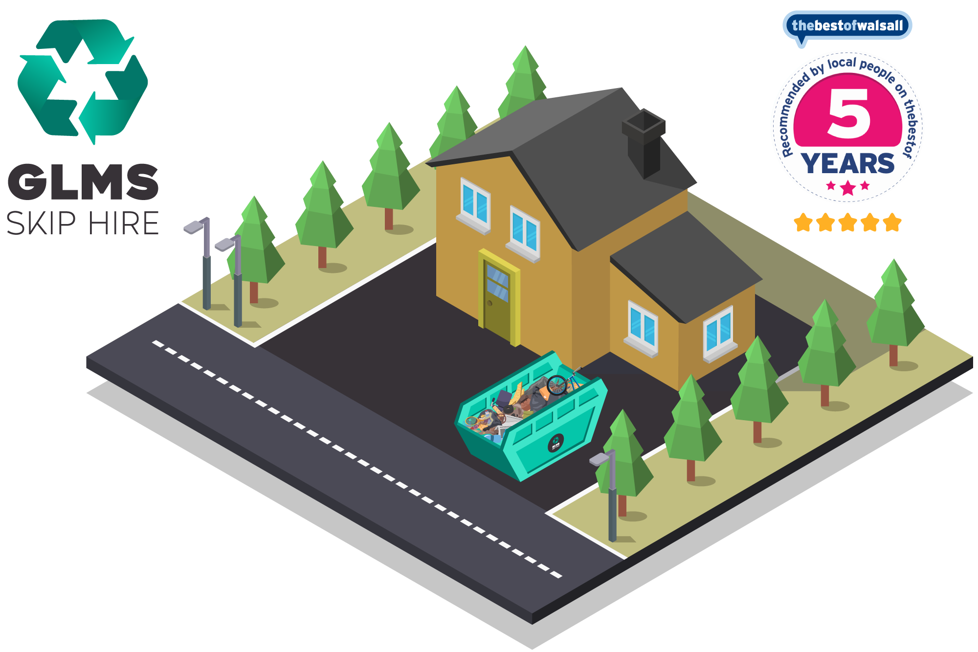 GLMS Skip Hire is a reputable skip hire service based in Walsall, covering a broad range of the West Midlands. We offer various sizes of skips, from 2-yard mini skips to large 50-yard roll on/roll off skips, suitable for both domestic and commercial waste disposal needs.